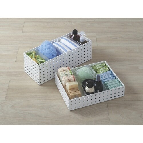 小物や雑貨を分別収納 「BRICKS」9025 350ミドルLサイズです。 すき間の無駄を作らないシンプルなデザインです。 丈夫な素材ですべり止め付きです。 別売りの仕切り板を使うとさらに便利です。 |