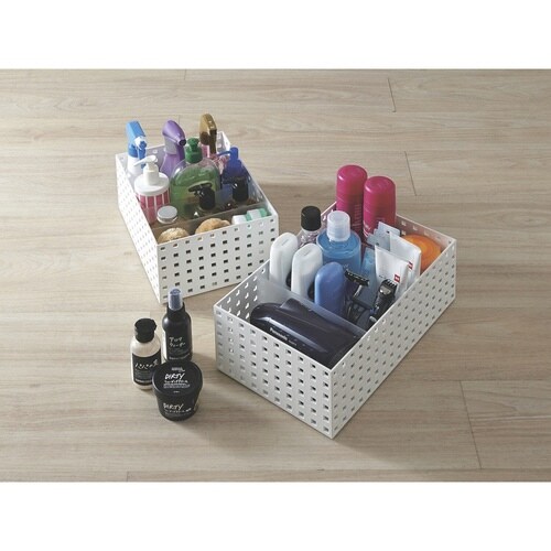 小物や雑貨を分別収納 「BRICKS」9046 350ワイドLサイズです。 すき間の無駄を作らないシンプルなデザインです。 丈夫な素材ですべり止め付きです。 別売りの仕切り板を使うとさらに便利です。 |