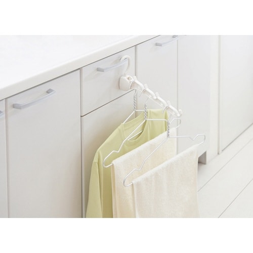 取っ手やポールに取付けて 旅行先でも便利 アームは上下2段階調節 回転するフック |