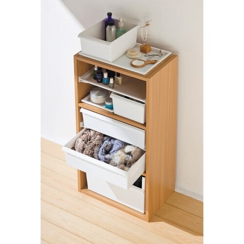 お手持ちのカラーボックスやラックと組み合わせて、細かく分類して収納できる収納ボックスシリーズのワイドレールです。 |