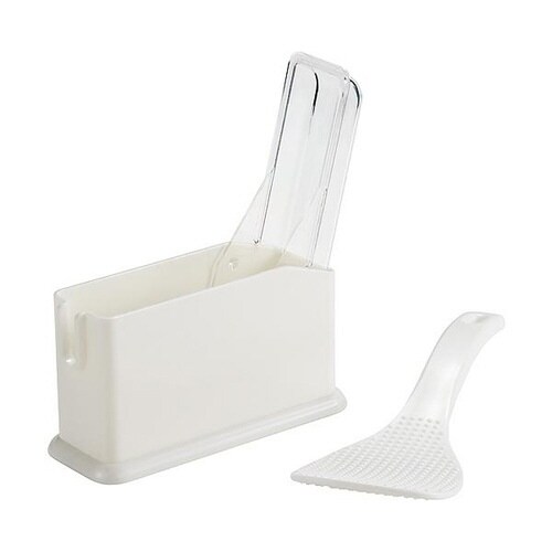 しゃもじを置くとカバーが閉まるので、わざわざカバーをしめる手間がありません! カバーつきなのでほこりがつかず衛生的に保管ができます。 |