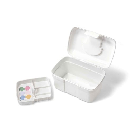シンプルでインテリアに馴染む日本製の救急箱です。 お部屋に出したままでも気にならない真っ白なデザインです。 上段・下段と整理しやすい上、収納力も抜群です。 持ち運びにも収納にも丁度良いサイズ感です。 |