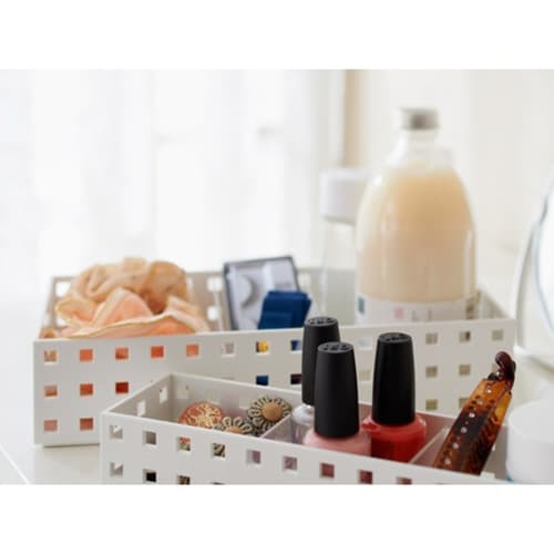 小物や雑貨を分別収納 「BRICKS」9003 280ミドルMサイズです。 すき間の無駄を作らないシンプルなデザインです。 丈夫な素材ですべり止め付きです。 別売りの仕切り板を使うとさらに便利です。 |