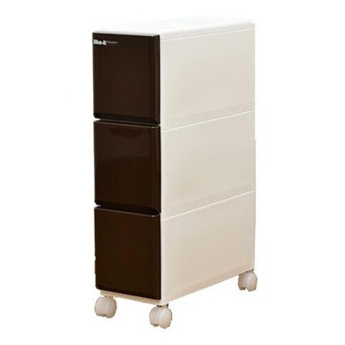 キッチンストッカー ラグドロワ 3段 スリム 光沢パネル 幅17cm ブラウン