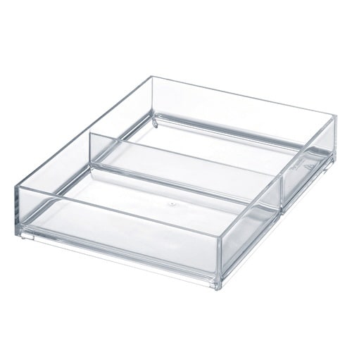 自由なスタッキングで自分だけの収納空間が作れるシステムトレーです。 様々なサイズとの組み合わせができます。 文具や鍵などの収納に便利な2分割Sサイズです。 |