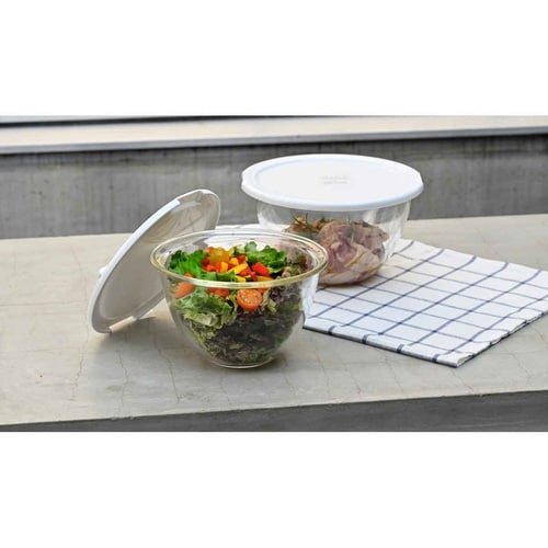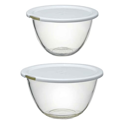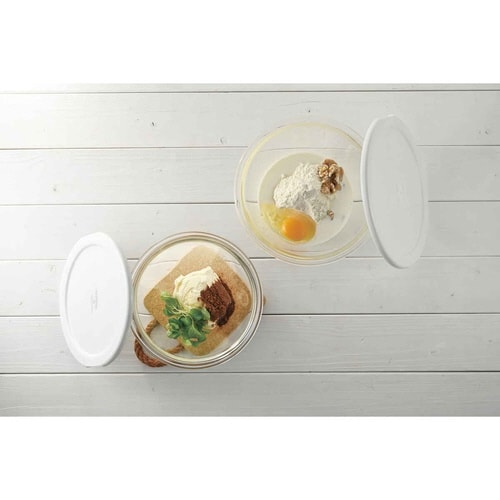 電子レンジで使えるフタ付きボウル 2個セット 食材を混ぜやすい深型 ニオイや色がうつりにくくお手入れ簡単 冷蔵庫で保存可能 フタは湯切り付き |
