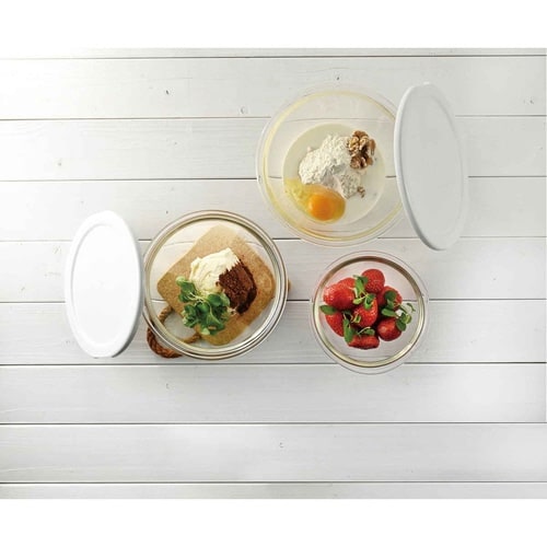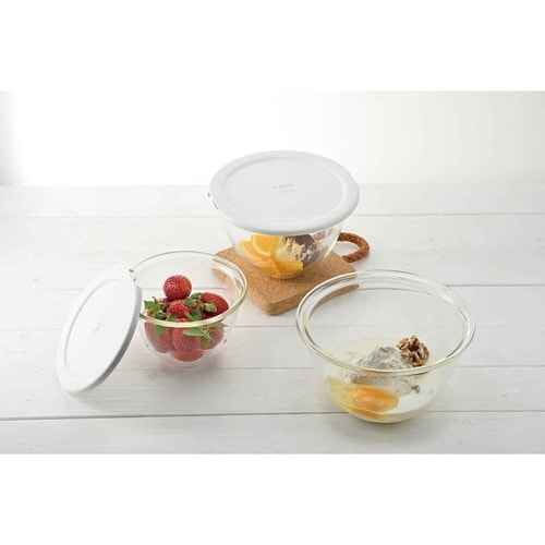 電子レンジで使えるフタ付きボウル3個セットです。 深型なので食材を混ぜやすいです。 ニオイや色がうつりにくくお手入れが簡単です。 冷蔵庫で保存できます。 |