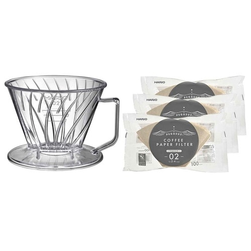 コーヒードリッパーとコーヒーフィルターのセットです。 スパイラルリブと小さな二つ穴で味の再現性を高めやすくします。 専用のスプーンが不要で簡単にコーヒー粉の計量ができます。 |