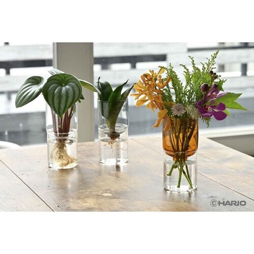 透明度の高いガラス製のフラワーベースです。 水耕栽培も楽しめます。 耐熱ガラスなので、熱湯に対応しています。 |