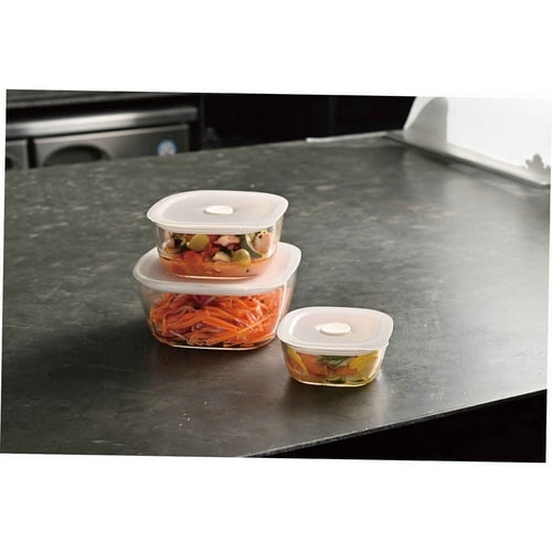 色と匂いがつきにくい耐熱ガラス製角型保存容器 1.2L パッキン付きで密閉性が高い フタをしたまま電子レンジ使用可能 天然鉱物から作られる耐熱ガラス 入れ子でコンパクト収納 |