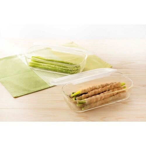 色と匂いがつきにくい耐熱ガラス製角型保存容器 1.4L オーブン使用可能 フタをしたまま電子レンジ使用可能 食器として食卓へ 天然鉱物から作られる耐熱ガラス |