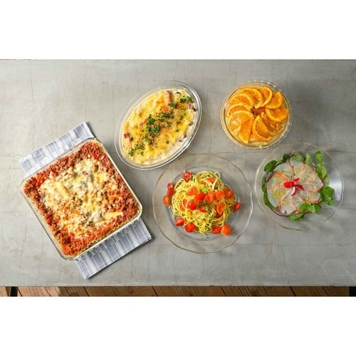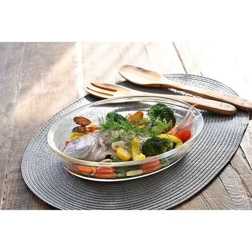 100年続いた、熱に強く、酸にも強い耐熱ガラスの技術「HARIO Glass」を用いたオーバル皿です。 オーブンで調理して、そのまま食卓に出していただけます。 |