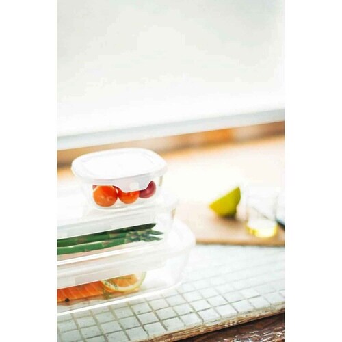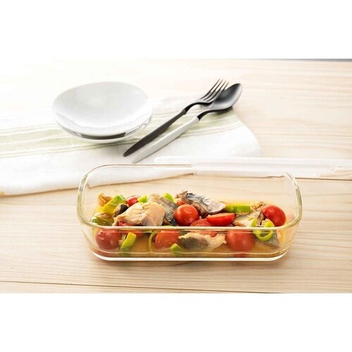 色と匂いがつきにくい耐熱ガラス製角型保存容器 900ml オーブン使用可能 フタをしたまま電子レンジ使用可能 食器として食卓へ 天然鉱物から作られる耐熱ガラス |