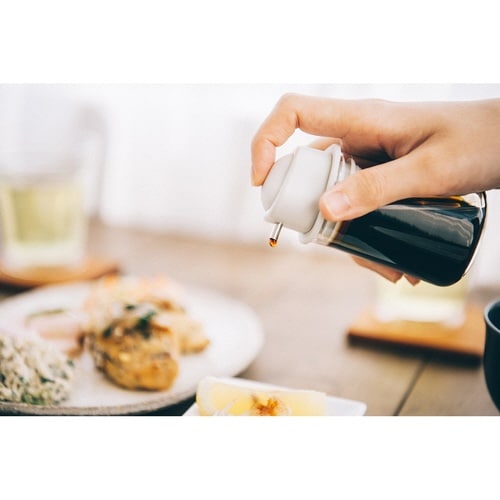 ボタンを押すことで醤油が出てくる、プッシュタイプの醤油さしです。 本体ボトルは、色やにおいがつきにくい耐熱ガラス製です。 80mlのコンパクトサイズなので、こまめに詰め替えて醤油の鮮度を保ちます。 |
