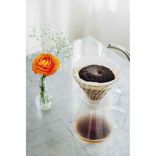 ガラス製ドリッパーとサーバー、軽量スプーンとフィルターのセットです。 コーヒーを淹れるのに必要なグッズがセットになっているので届いたその日から使えます。 |