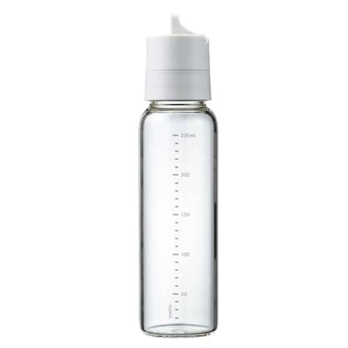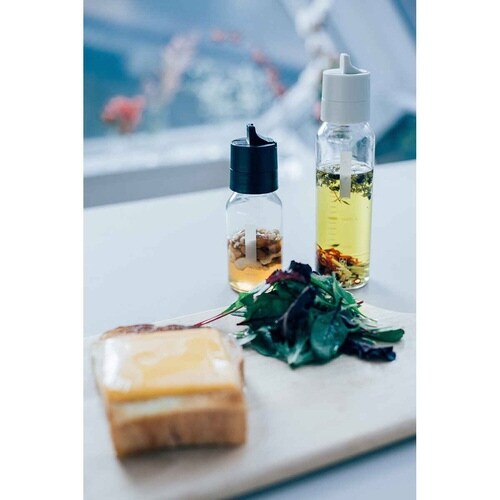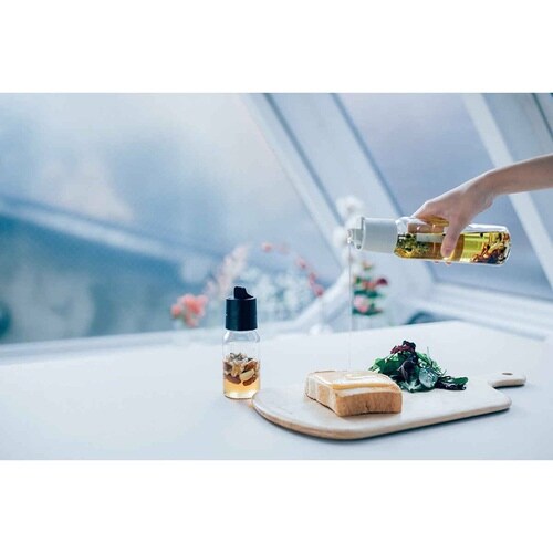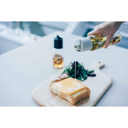 片手で開閉できるドレッシングボトル250mlです。 密封性が高いので、材料を入れて振ればドレッシングが作れます。 本体ボトルは、色やニオイがつきにくい耐熱ガラス製です。 |