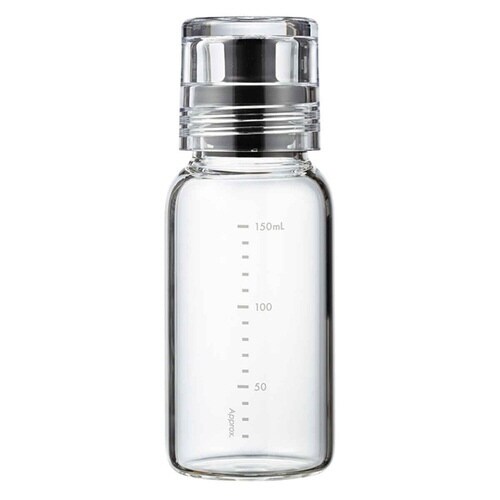振って・作って・注いで・保存までできるドレッシングボトル150mlです。 ネジ口密封ボトルなので、液漏れの心配もなく混ぜ合わせられます。 本体ボトルは、色やニオイがつきにくい耐熱ガラス製です。 |