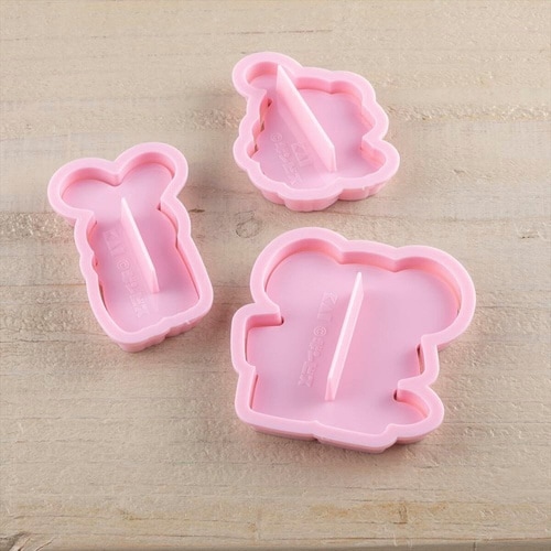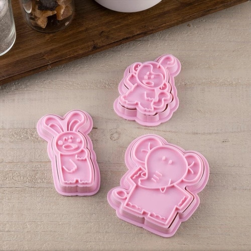 「製菓たべっ子どうぶつ」シリーズのクッキーの抜き型と押し型のセットです。 お馴染みのキャラクター3種類のクッキーが作れます。 パッケージの裏面にはサクサククッキーのレシピ付きです。 |