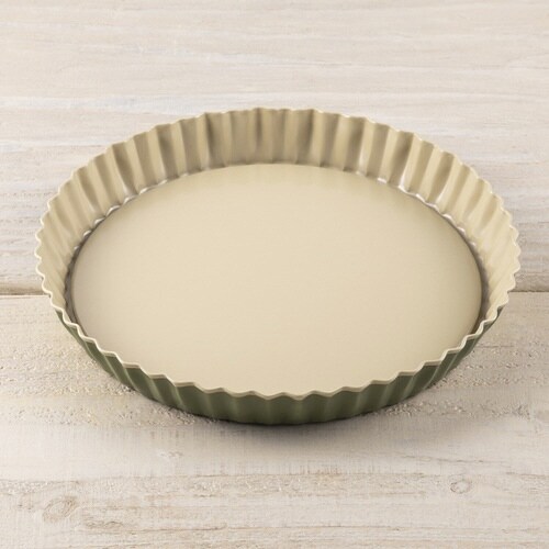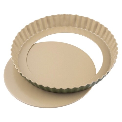 ヤシの葉から採取された「カルナウバワックス」をコーティングに使用した、人と環境にやさしいタルト型です。 BPA・PFOAフリーです。 焼きあがった生地を手早く取り出せる、底取れタイプです。 |