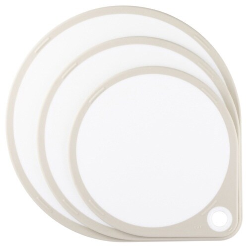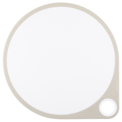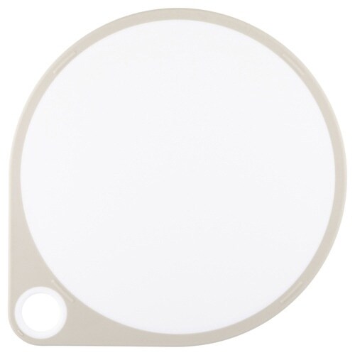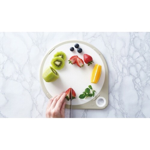 扱いやすい円形状のまな板 25cmです。 縁にすべり止め加工が施されているので、調理中にまな板がズレたり動いたりすることがなく安心です。 直線部分があるので転がらず、立てかけて乾かせます。 |