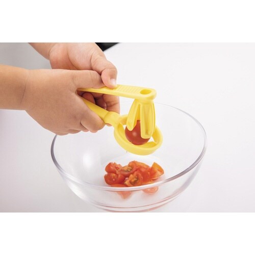 お子様が料理のお手伝いをするのがもっと楽しくなるリトルシェフクラブシリーズのミニトマトカッターです。 小さいお子様でも握るだけでミニトマトを4つ割りにできます。 食洗機対応でお手入れも簡単です。 |