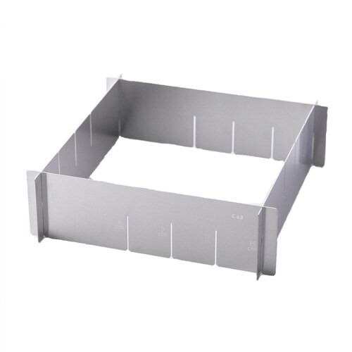 4枚のプレートを組み合わせてサイズを変えられるケーキ型です。 組み合わせ次第で長方形も可能です。 分解できるので洗いにくい角も洗いやすいです。 使わないときは分解してコンパクトに収納できます。 |