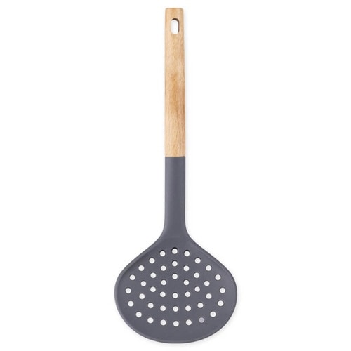 鍋やフライパンを傷つけにくい、シリコーン製の穴あきレードルです。 パスタや茹で野菜の湯切り、湯豆腐、煮物などの調理で活躍します。 大きめサイズなので一度にたっぷりすくえます。 |