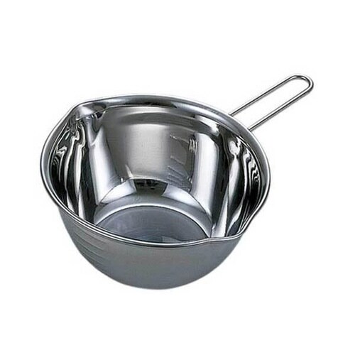 取っ手と注ぎ口の付いた、湯せんボールです。 取っ手が付いているので、湯せんの作業の際、ボウルに掛けて使えます。 注ぎ口が付いているので、溶かした後の流し込みにも便利です。 |