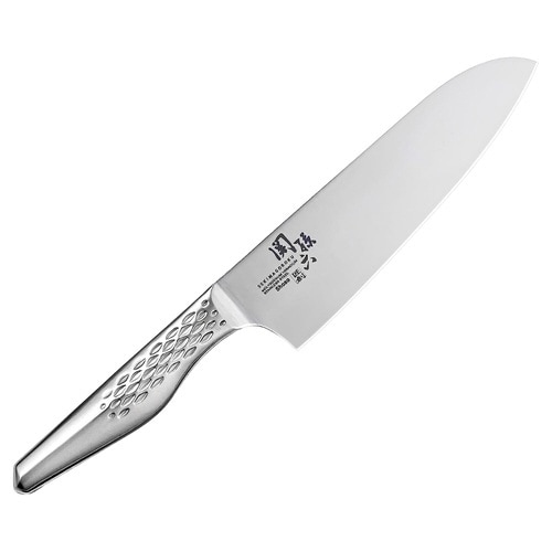 衛生的なオールステンレス製の三徳包丁です。 一体成形で継ぎ目がないので、堅牢性に優れています。 三工程刃付けで爽快な鋭い切れ味です。 グリップ感の高いハンドルは握りやすく、力の入れやすい形状です。 |