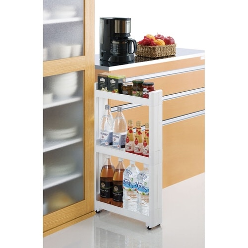たった幅10.5cm!気になる隙間を有効活用できるキッチンワゴンです。 側面の板が目隠し代わりになります。 工具不要で組み立て簡単です。 高さの異なる落下防止ガードがついています。 |