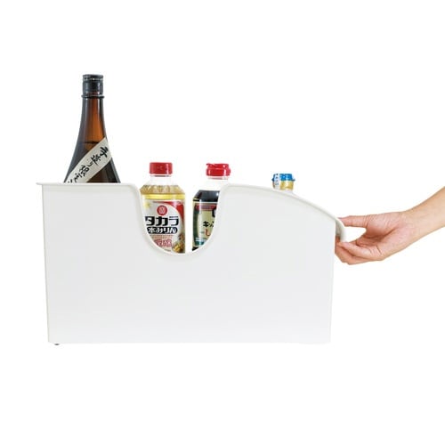 調味料から一升瓶まで、しっかり収まるシンク下ボックスです。 後部にコロが付いているので、軽い力で出し入れできます。 かさばるボトル類も奥までしっかり収納できます。 |