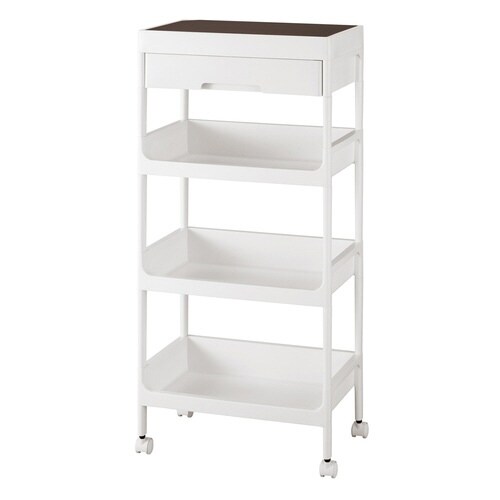 現代の住居スペースに合わせて省スペースに置けるように作られた、コンパクトなのに収納力抜群のワゴンです。 天板はリバーシブルで、ひっくり返すだけで天板のカラーを変えることができます。 |