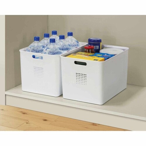 キッチン・パントリーのための収納ケース パントリーを整えて、使いやすく 使いやすさを考えたサイズ展開 中段や下段での使用に最適な「シューノ・L」 中がほどよく見えるメッシュ付き |