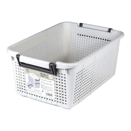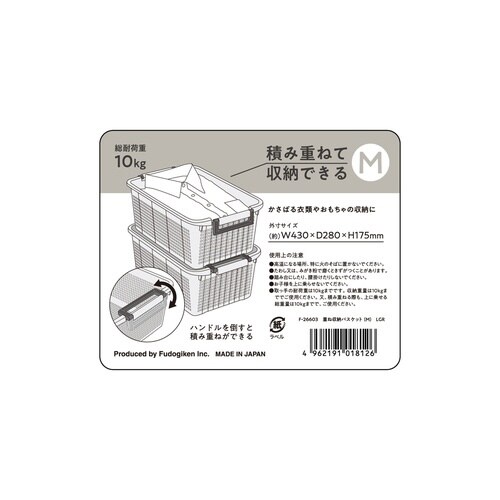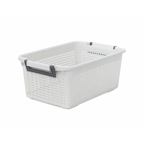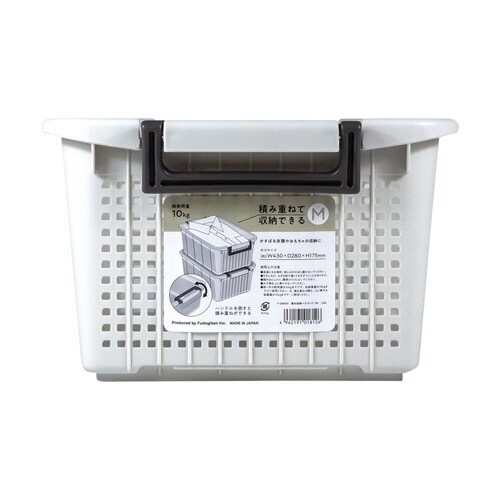 不動技研 バスケット M 幅28×奥行43×高さ17.5cm スタッキング ライトグレー 9328-9207