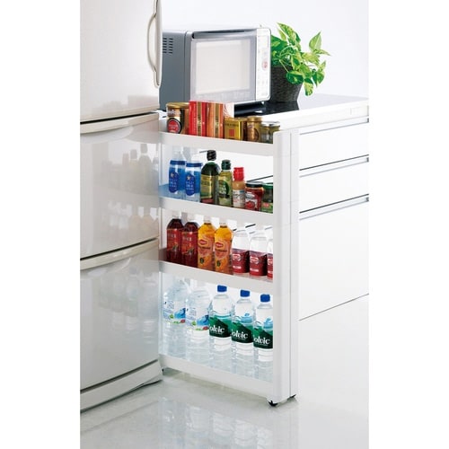 たった幅12.5cm!気になる隙間を有効活用できるキッチンワゴンです。 側面の板が目隠し代わりになります。 工具不要で組み立て簡単です。 高さの異なる落下防止ガードがついています。 |