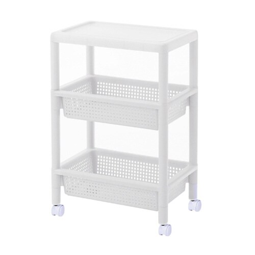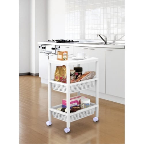 ちょい置きもできるテーブルワゴン キッチン以外の場所でも活躍 小物も落ちにくいバスケットとキャスター付き 簡単組立 |