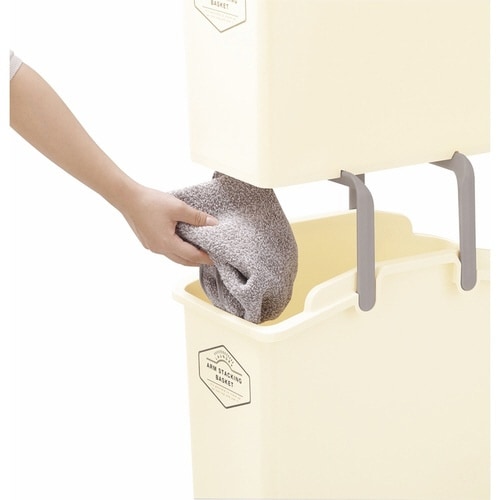 ランドリーバスケット アームスタッキングバスケット スタッキングバスケット 洗濯かご スタッキング アイボリー