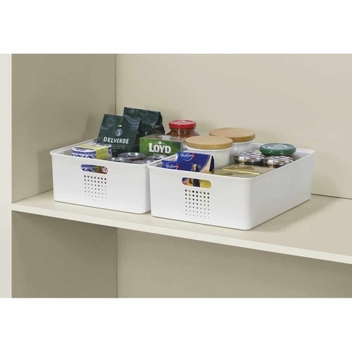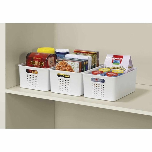 キッチン・パントリーのための収納ケース パントリーを整えて、使いやすく 使いやすさを考えたサイズ展開 中段や下段での使用に最適な「シューノ・M(ハーフ)」 中がほどよく見えるメッシュ付き |