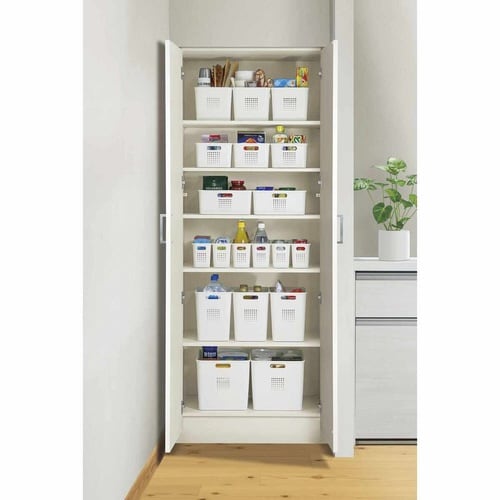 キッチン・パントリーのための収納ケース パントリーを整えて、使いやすく 使いやすさを考えたサイズ展開 中段での使用に最適な「シューノ・S」 中がほどよく見えるメッシュ付き |