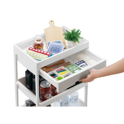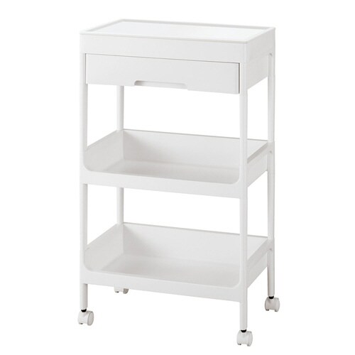 現代の住居スペースに合わせて省スペースに置けるように作られた、コンパクトなのに収納力抜群のワゴンです。 支柱が細く、どこに置いても馴染むスタイリッシュでシンプルなデザインです。 |