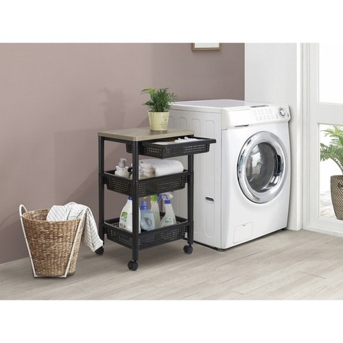 平均的なダイニングテーブルと同じ高さのキッチンワゴンです。 バスケット部分はA4サイズがすっぽり入ります。 工具要らず、パーツも少なめで簡単に組み立てられます。 |