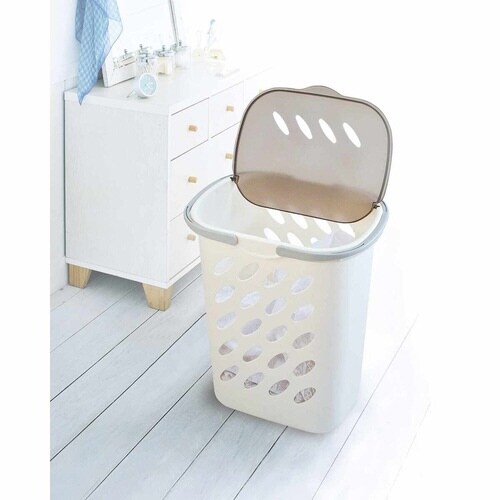 洗濯物もたっぷり入る蓋付き大型バスケットです。 ハンドルが付いるので持ち運びがラクです。 ランドリーバスケットとして使いやすい深型です。 |