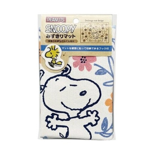 洗った食器の水分をどんどん吸収する水切りマットです。 可愛らしい3つのスヌーピー柄で食器洗いも楽しくなります。 便利に使えるキャッチフック付きです。 |
