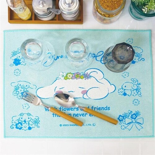 お子さまの食べこぼしや水分をしっかり受け止める吸水マットです。 可愛らしいシナモロールのマットです。 ランチョンマット、水切りマットとして2wayで使えます。 |
