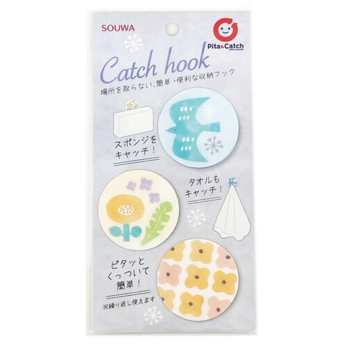 スポンジラック ピタッとキャッチフック 3個入 ナチュラル