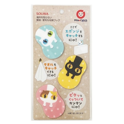 スポンジラック ピタッとキャッチフック 3個入 ネコ