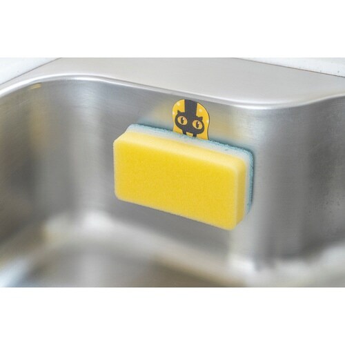 表面の目に見えない突起が繊維を引っ掛け、フックに早変わり。 裏面の粘着シートで壁やシンクにピタっと貼れます。 シンクに貼り付けると食器洗いスポンジを付けられます。 |