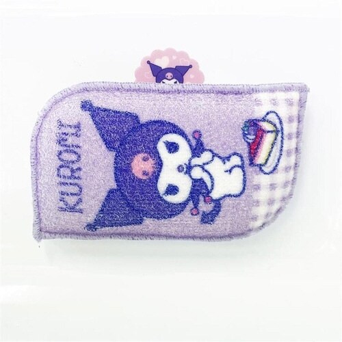 ポリエステルフィルムとパイルメッシュ素材の両面仕様で汚れがよく落ちるスポンジです。 可愛らしいクロミのスポンジです。 スポンジを壁面に貼って水切りができる便利なフック付きです。 |