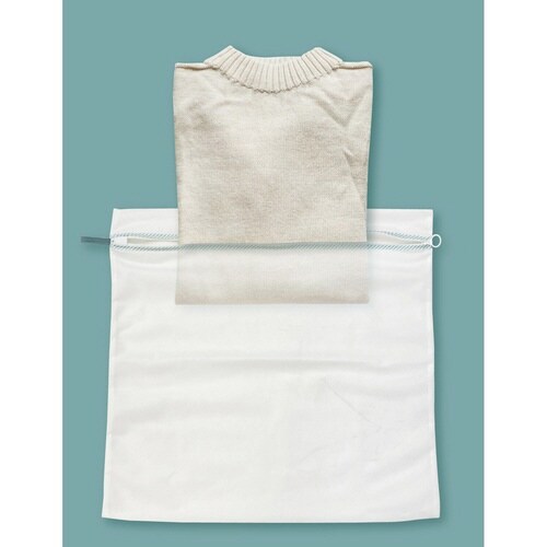 シンプルで使いやすい洗濯ネット約60×60cmです。 メッシュ素材で糸くずをしっかりガードします。 リングファスナーなので、開閉しやすいです。 |