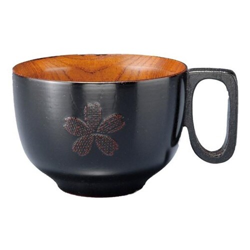 スープカップ 木製 250ml 漆 桜 天然木 持ち手付き 食器 朱 黒